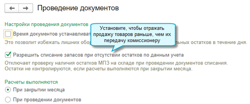 Полный интерфейс: меню "Администрирование - Настройки программы - Проведение документов".