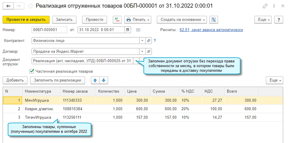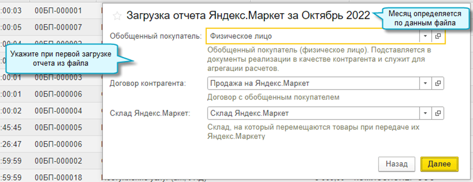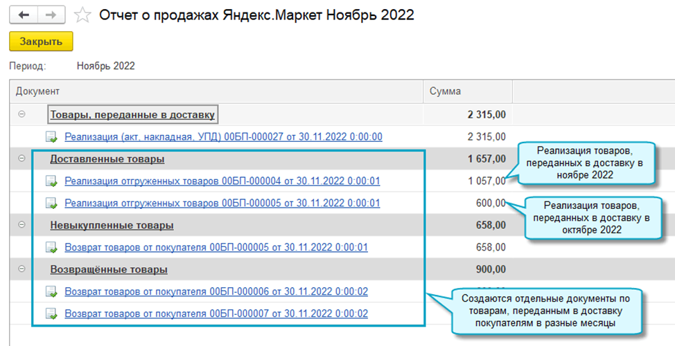 Если продажа через Яндекс.Маркет уже ведется, то в первое время при переходе на загрузку отчета потребуется продолжать вводить вручную документы по товарам, ранее переданным в доставку.