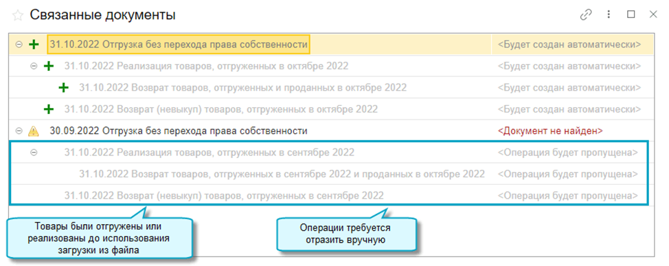Загрузка доступна в полном интерфейсе при включенной Отгрузке без перехода права собственности в функциональности программы.