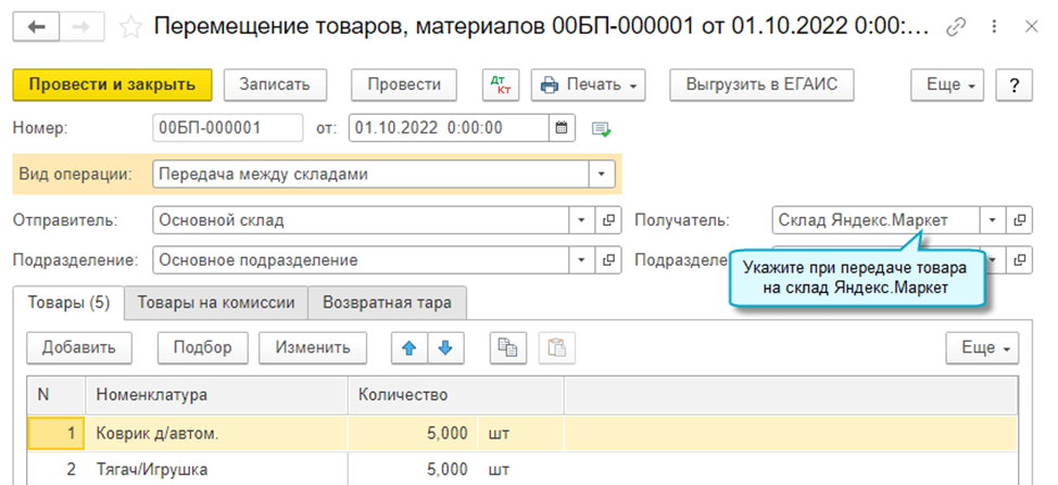 Поскольку Яндекс не является комиссионером (агентом), рекомендуется передачу товаров на его склад отразить как перемещение товаров.