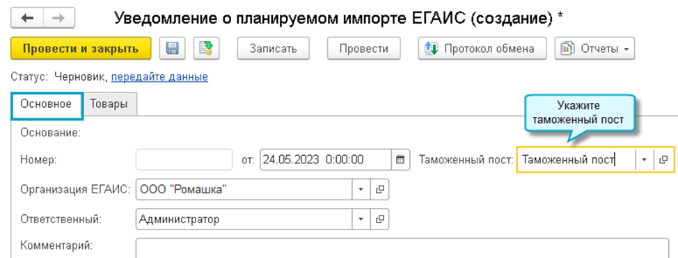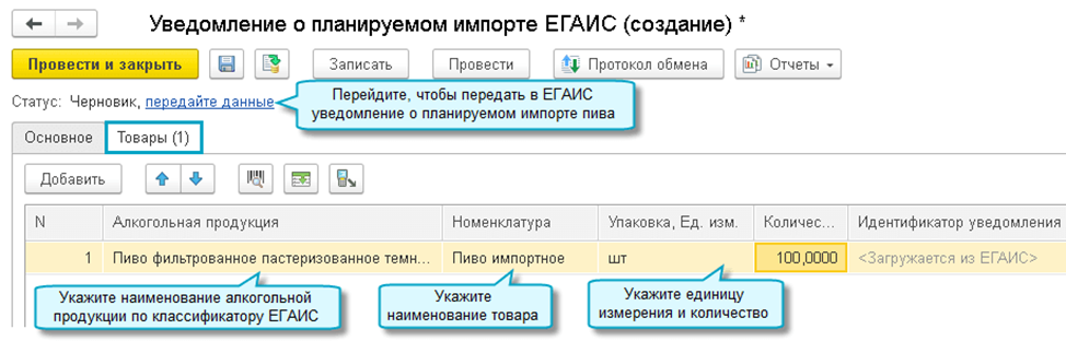 Добавлена возможность подготовить и передать в ЕГАИС уведомление таможенного органа о планируемом импорте пива.