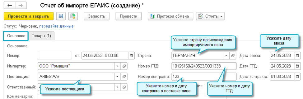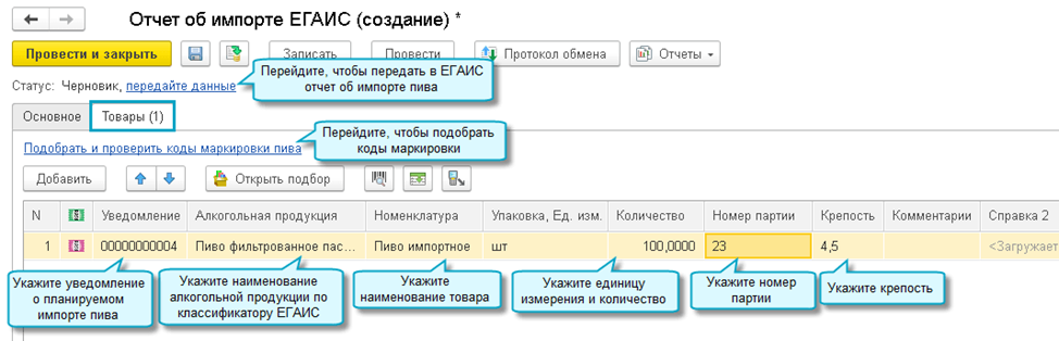 Добавлена возможность подготовить и передать в ЕГАИС данные об импорте пива с указанием кодов маркировки.