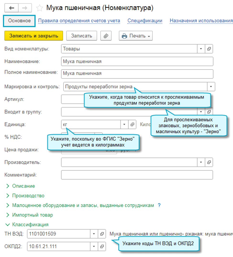 - настройте справочник Номенклатура по продукции и товарам, подлежащим прослеживаемости