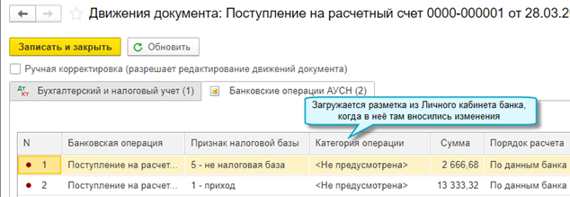 При загрузке банковских операций через сервис АУСН теперь сохраняется разметка из Личного кабинета банка, когда там вносились изменения в разметку.