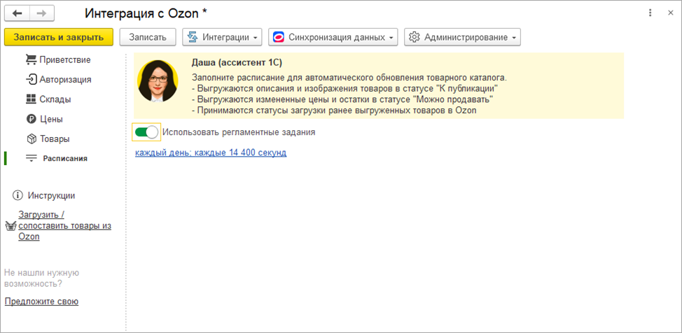 После того, как товары опубликованы, можно настроить регулярное обновление данный на торговой площадке.