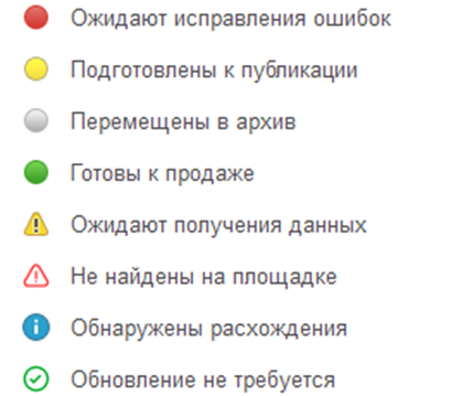Отслеживать текущее состояние товаров маркетплейса удобно в форме списка товаров к публикации. Данная форма является основной для управления товарным каталогом. В ней доступен просмотр текущего состояния товаров маркетплейса (их статуса, цен, остатков), а также работа с позициями с ошибками.