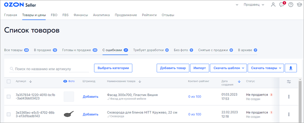 Товары, переданные на модерацию, появятся в личном кабинете Ozon.