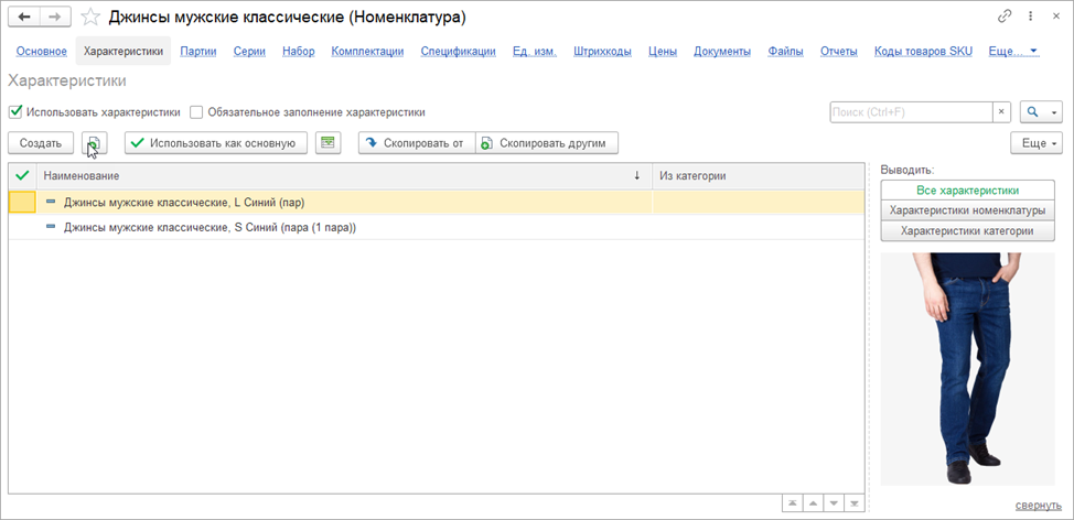 Категория – это верхний уровень классификации товаров на маркетплейсе. Для каждой категории на маркетплейсе предусмотрен свой набор атрибутов, которые описывают потребительские свойства товаров: цвет, размер, бренд, материал, вариант исполнения отдельных элементов товара. В информационной базе им могут соответствовать основные реквизиты, характеристики номенклатуры, дополнительные реквизиты номенклатуры и другие данные информационной базы.