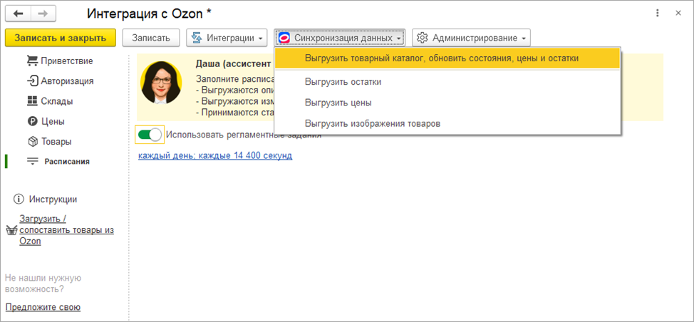 Обновление остатков и цен товаров будет выполняться автоматически согласно расписанию.