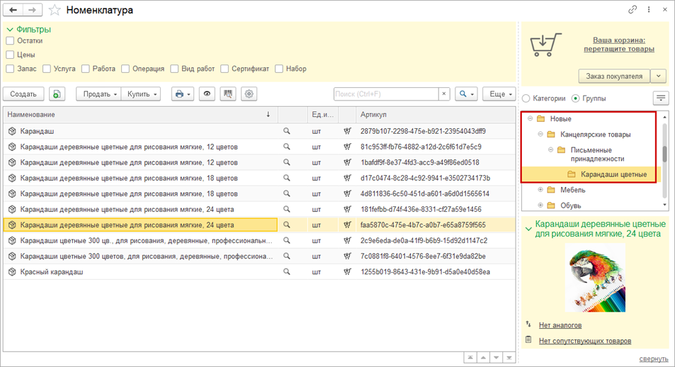 Все новые товары в 1С можно поместить в отдельную группу. Это облегчит проверку результатов после загрузки.