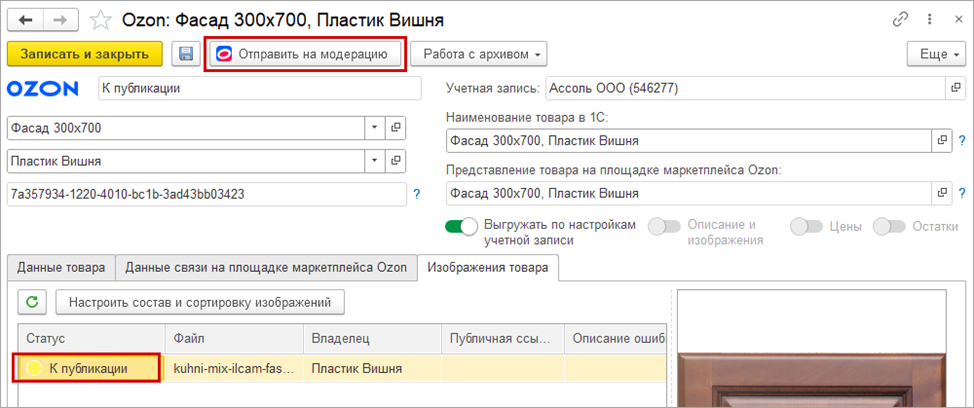 После заполнения изображений напротив файла появится статус "К публикации". Теперь товар можно отправлять на проверку.