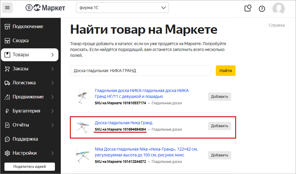 Также вы можете самостоятельно подобрать товар на площадке Яндекс Маркета. Попробуйте найти товар в личном кабинете Яндекс Маркета.