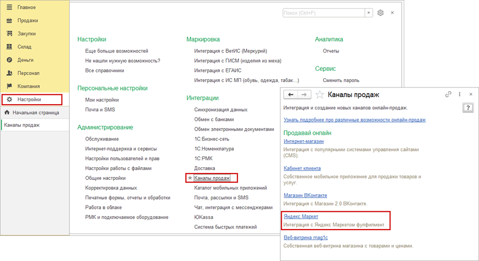 Для выгрузки по модели FBS/FBY дополнительно потребуется зарегистрировать склады и магазины в личном кабинете Яндекс Маркета.